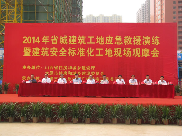 6月24日上午,集團公司總工程師張世嬡帶領集團公司應急救援第七大隊參加了由省住房和城鄉(xiāng)建設廳與太原市住房和城鄉(xiāng)建設委員會舉辦的“2014年建筑工地應急救援演練暨全省建筑安全標準化工地現(xiàn)場觀摩會”。