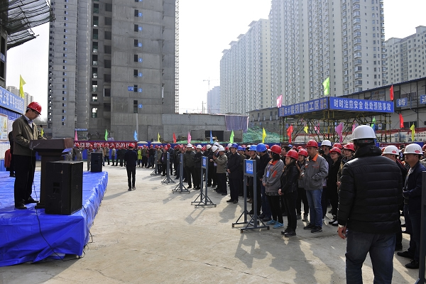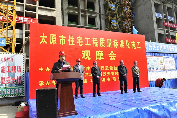 2015年4月3日上午,為貫徹落實建設(shè)部全國工程質(zhì)量治理兩年行動電視電話會議和山西省住建廳、太原市住建委工程質(zhì)量治理兩年行動推進(jìn)會議精神,進(jìn)一步規(guī)范全市建筑質(zhì)量標(biāo)準(zhǔn)化施工,保障住宅工程質(zhì)量。由太原市建設(shè)工程質(zhì)量監(jiān)督站、太原市龍城發(fā)展投資有限公司主辦,太原建工集團(tuán)有限公司承辦的“太原市住宅工程質(zhì)量標(biāo)準(zhǔn)化施工觀摩會”在我公司承建的“太原市府東街東延棚戶區(qū)改造安置用房項目”現(xiàn)場舉行。
