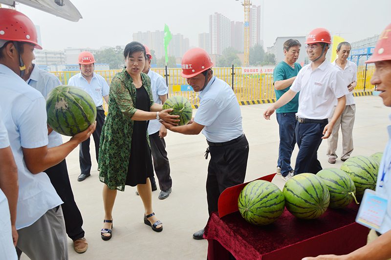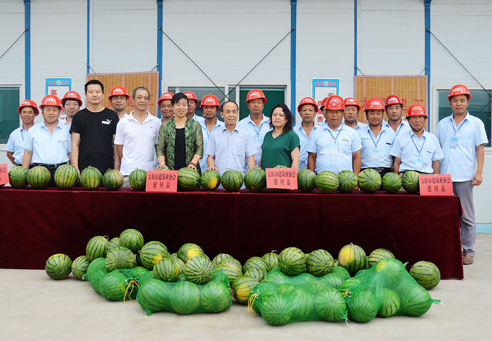 7月18日上午,炎炎夏日,驕陽(yáng)似火。市建協(xié)秘書(shū)長(zhǎng)劉紅梅、工程部長(zhǎng)張建平等協(xié)會(huì)領(lǐng)導(dǎo)一行五人,帶著滿(mǎn)滿(mǎn)的一車(chē)西瓜和對(duì)務(wù)工人員的關(guān)愛(ài),來(lái)到集團(tuán)公司承建的太原市小北關(guān)棚戶(hù)區(qū)改造安置用房項(xiàng)目部進(jìn)行“夏季送清涼”慰問(wèn)。 集團(tuán)有關(guān)部門(mén)的負(fù)責(zé)人一起參加了此次慰問(wèn)并對(duì)協(xié)會(huì)的關(guān)愛(ài)表示了誠(chéng)摯的感謝。