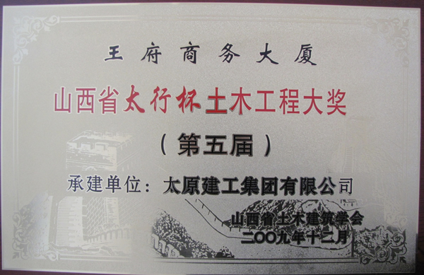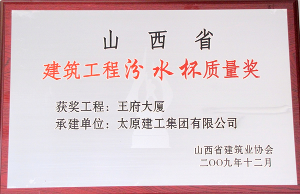 本工程先后榮獲山西省建筑業(yè)新技術(shù)應(yīng)用示范工程,山西省優(yōu)良安全文明工地,山西省優(yōu)良工程,2009年度獲第五屆山西省“太行杯”土木工程大獎,獲山西省建筑工程最高質(zhì)量獎—“汾水杯”。
